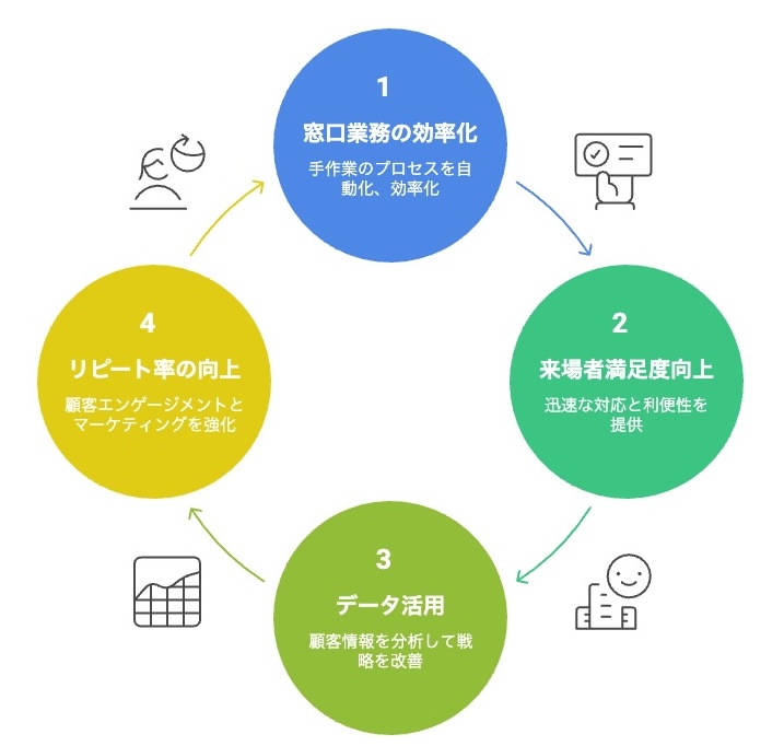 - ・窓口業務の効率化とスタッフ負担軽減: システム導入により、手作業や個別対応が必要だった業務プロセスが自動化・簡略化されます。